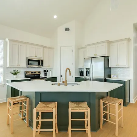 Cozinha equipada juntamente com refrigerador, utensílios de cozinha e artigos de vidro estão disponíveis nesta casa de férias de Freeport.